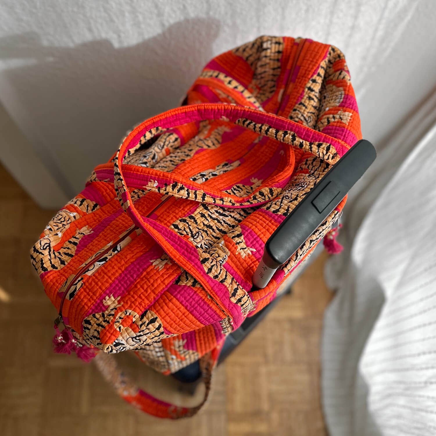 Large Travel Bag "Poppy Tiger" - your unique travel bag in carry-on size made from hand-printed cotton.
